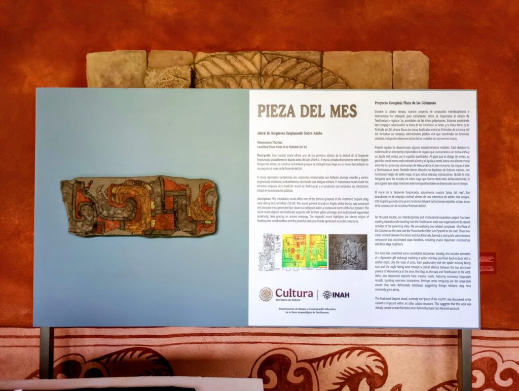 This piece is exhibited at Teotihuacan Archaeological Park’s Site Museum. Come and visit! Here we share a few pictures of its inauguration. We thank all the attendees, the team in charge of the mural’s intervention, and the people who made this exhibition possible, especially Jesús Torres from the Department of Museums and Educational Communication at the Archaeological Site of Teotihuacan, and Rogelio Rivero Chong, Director of the Archaeological Site of Teotihuacan.
